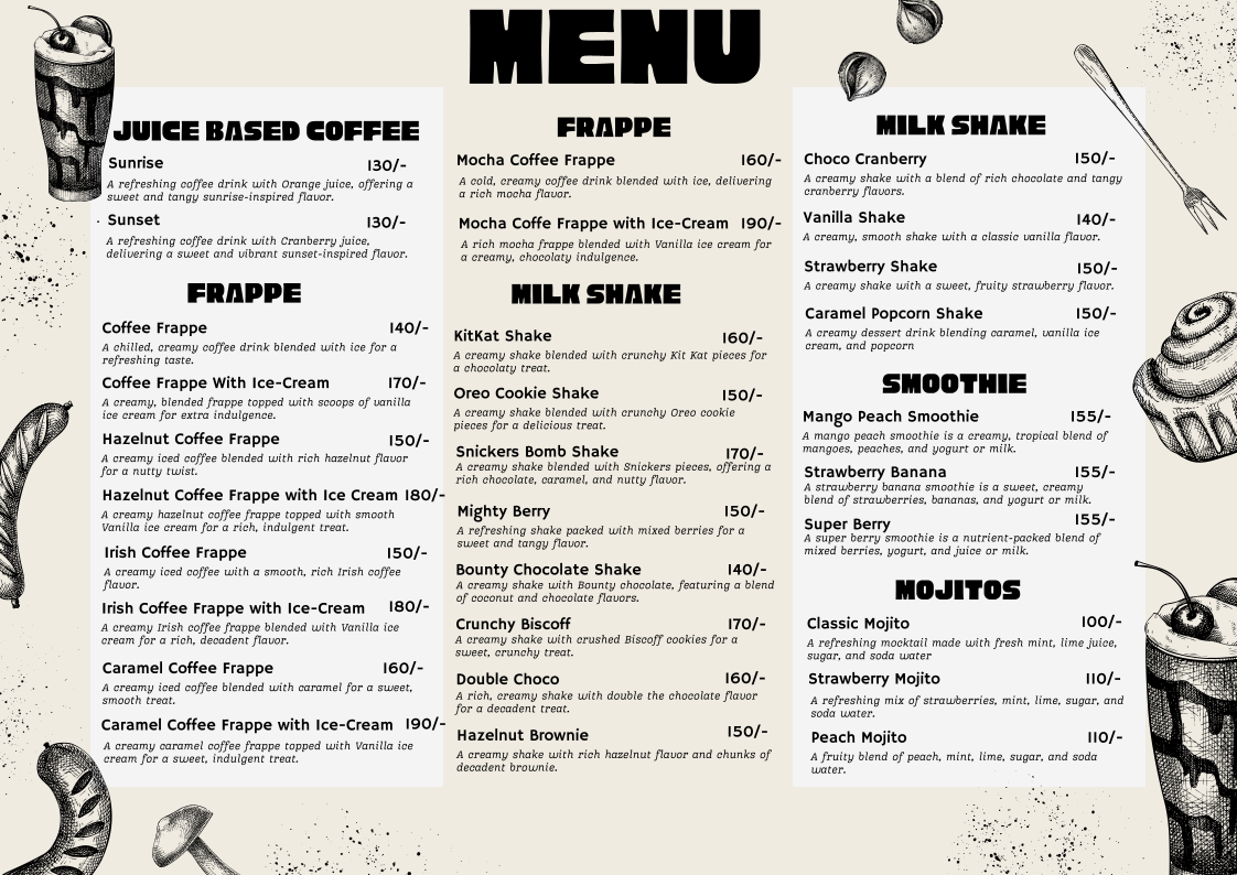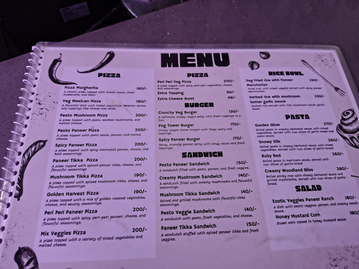 - Nuggets & Wedges: Enjoy crispy bites like Veg Nuggets and Cheesy Corn Triangles, all priced affordable at ₹130.